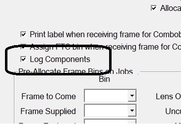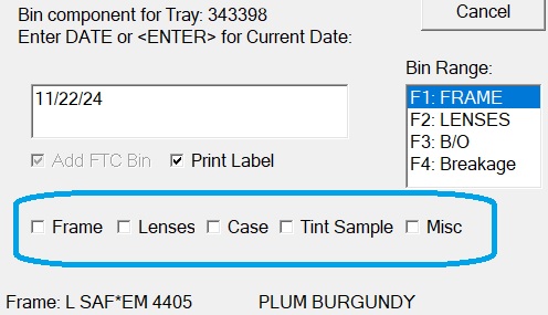 Adding the ability to assign components to the FTC Bin for a particular job. Components consist of Frames, Lenses, Case, Tint Sample and MISC. These are default options, not able to customize at this point.