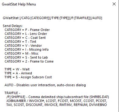 GWaitStat [/CATG:[CATEGORY]][/TYPE:[TYPE]][/F:[TRAYFILE]][/AUTO]